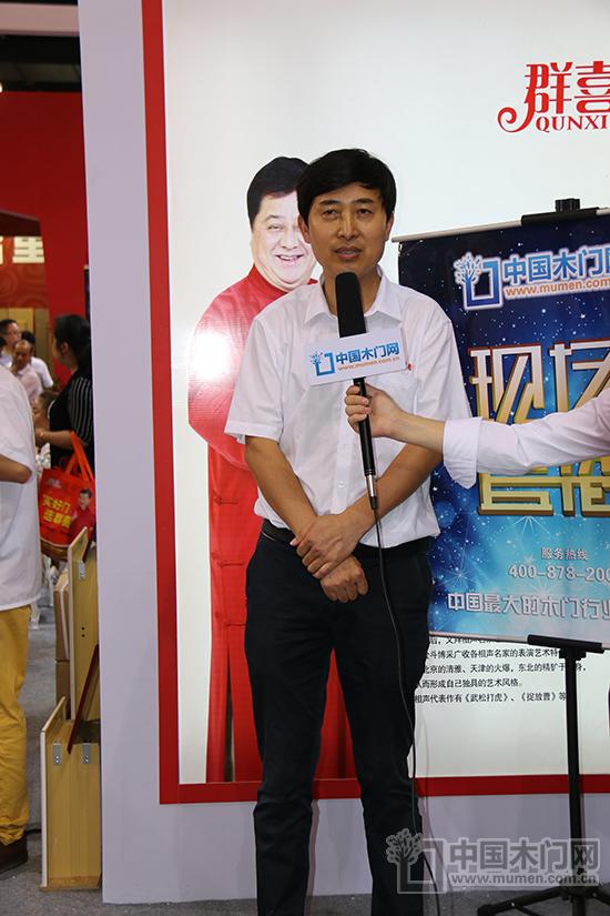 【记者】中国木门网的网友大家好,现在我所在的位置是群喜木门的展馆,今天很荣幸地邀请到群喜木门的单总接受我们的采访,单总来给大家打声招呼吧!