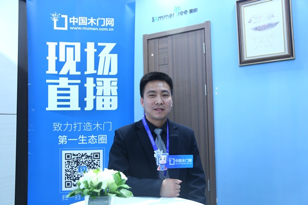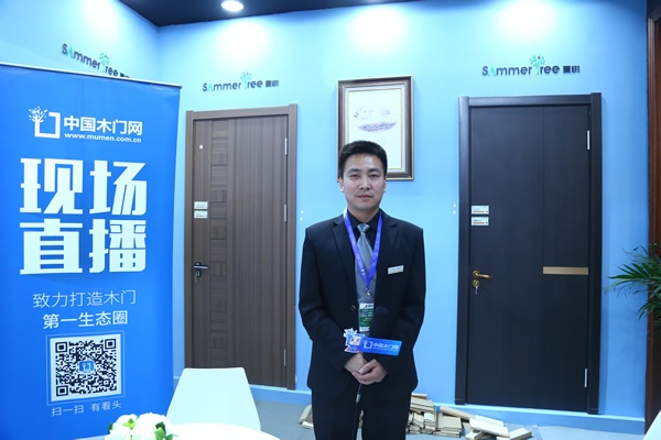 嘉阔木门曹晓阳:公司定位主要在于中高端烤漆木门,随着市场变化,随着工作节奏加快,包括咱们整个市场的人均消费,环保意识的增强,我们也推出一些生态门,现在也是逐步逐步往前推,今年我们推出新产品“夏树”,是根据极简轻奢,年轻时尚风格的产品。